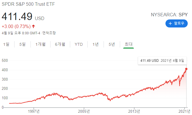 - 다우 존스를 추종하는 DIA와 마찬가지로 S&P500을 추종하기에 매우 안정적인 ETF입니다.
